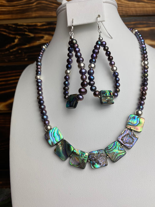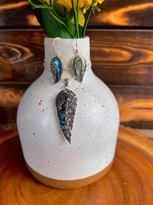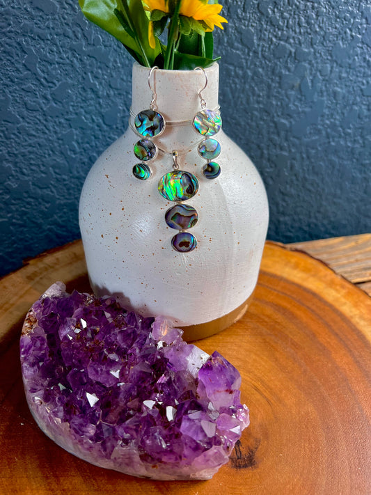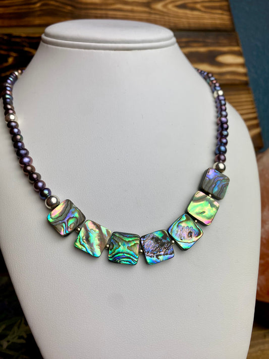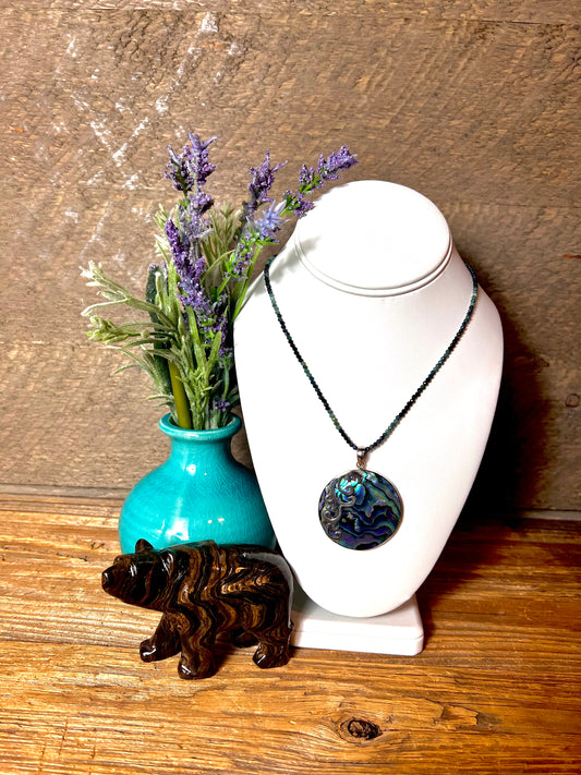 Abalone Sterling Silver w/ Blue Ombre Tourmaline Necklace