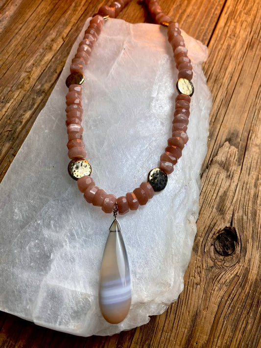 Sunstone Necklace W/ Chalcedony Pendant
