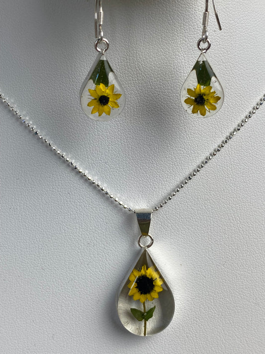 Sunflower Teardrop Necklace & Earring Set