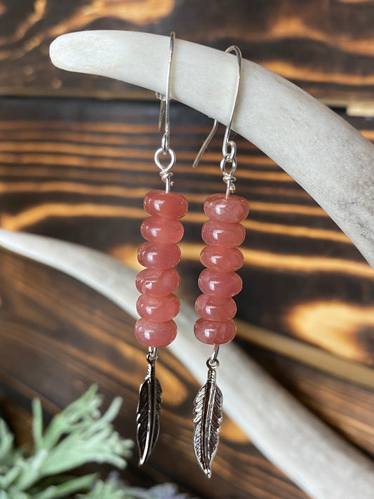 Sunstone Rondelle Feather Earrings