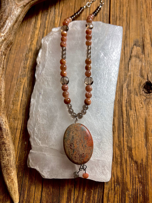 Sunstone & Smoky Quartz W/ Autumn Jasper Necklace