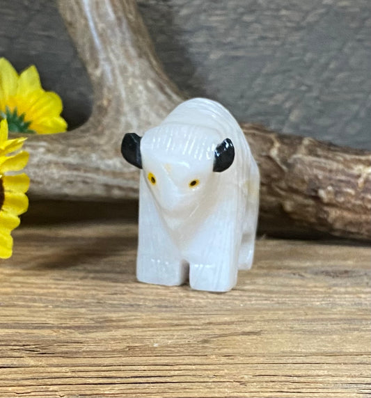 White Alabaster Buffalo Sculpture