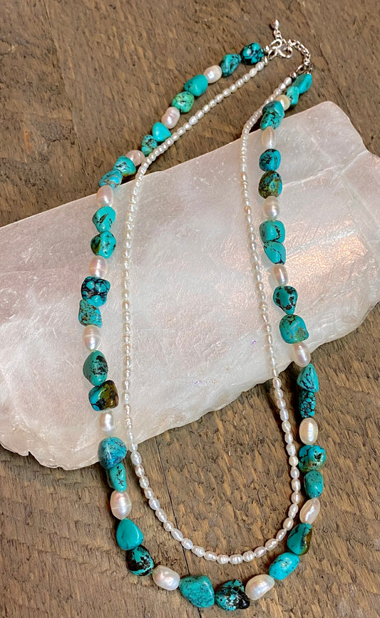 Turquoise & Seed Pearl Double Strand Bead Necklace