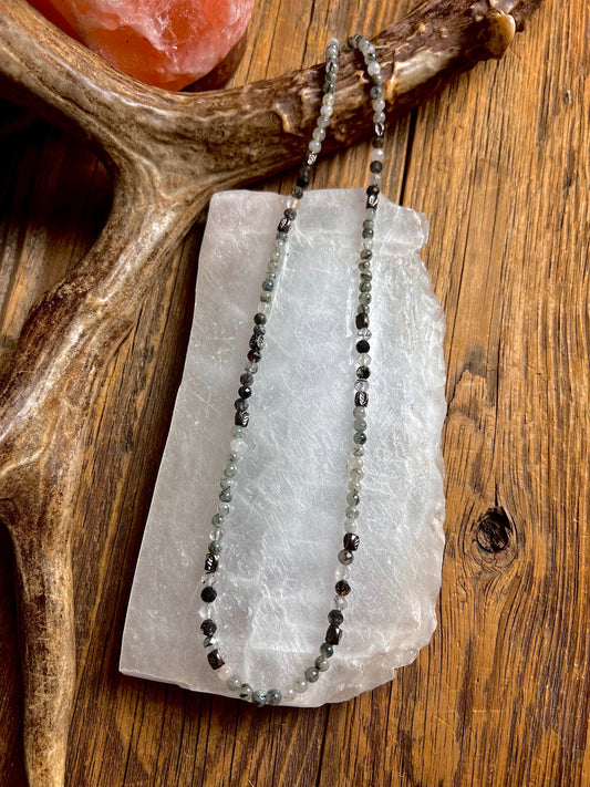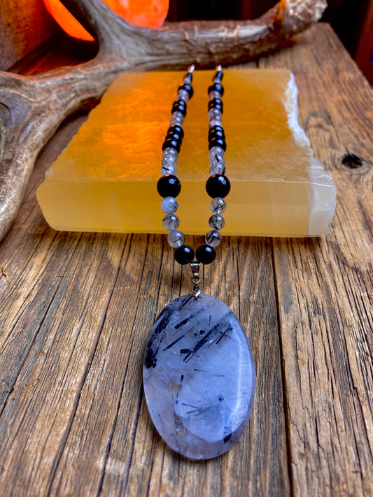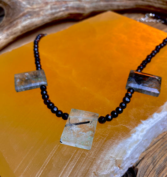 Tourmalinated Quartz & Black Spinel Necklace