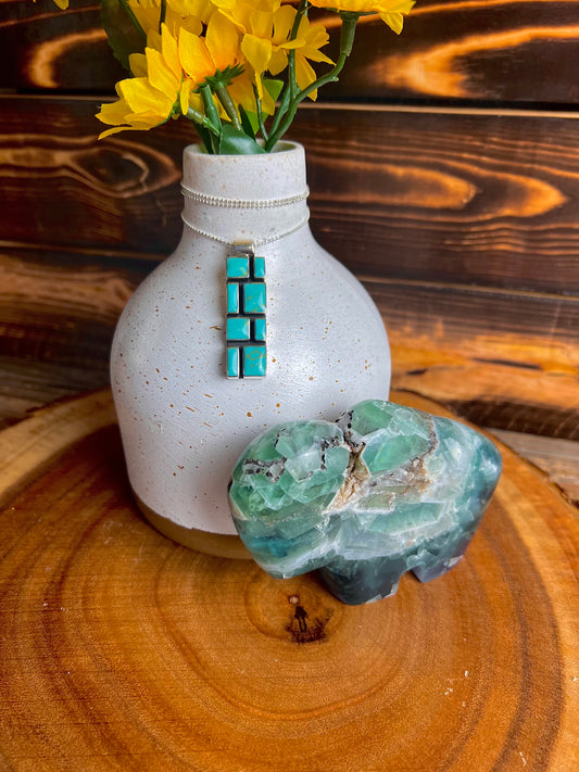 Turquoise Resin Sterling Silver Mosaic Necklace