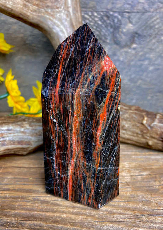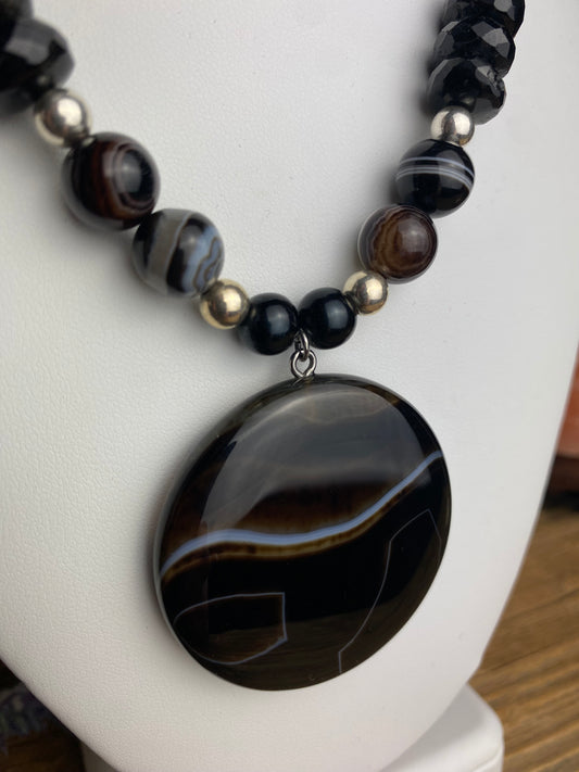 Black Spinel & Tourmalinated Quartz Teardrop Necklace