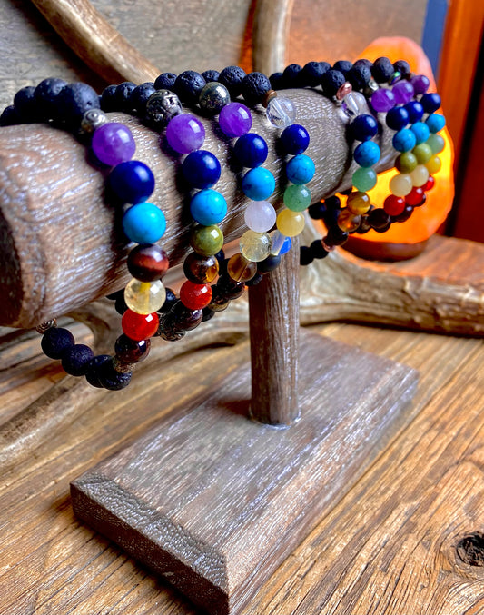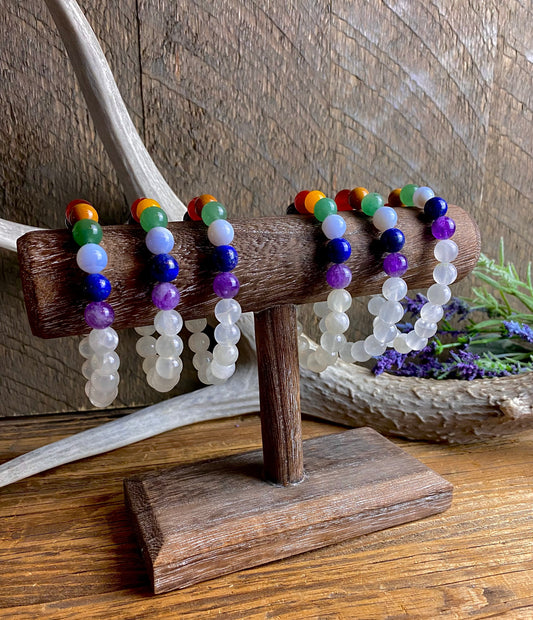 Chakra and Selenite Handmade 10mm Stretch Bracelet