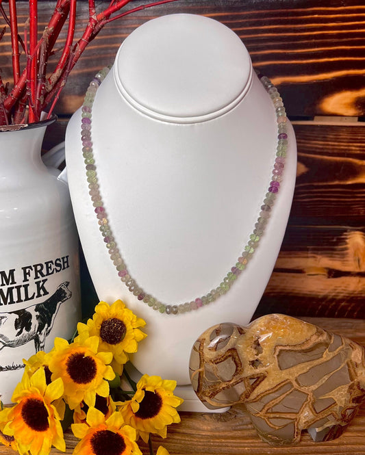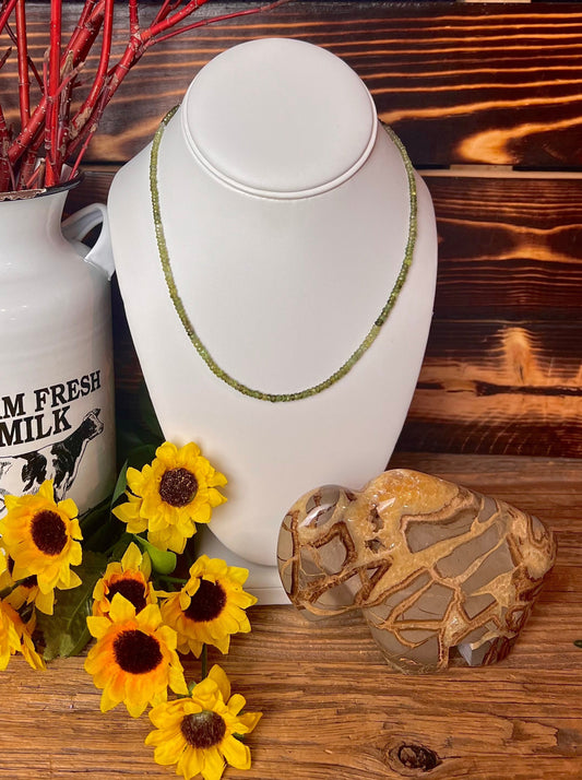Emerald Faceted 2mm Rondelle Beaded Necklace