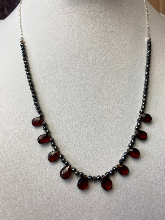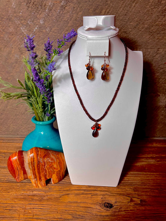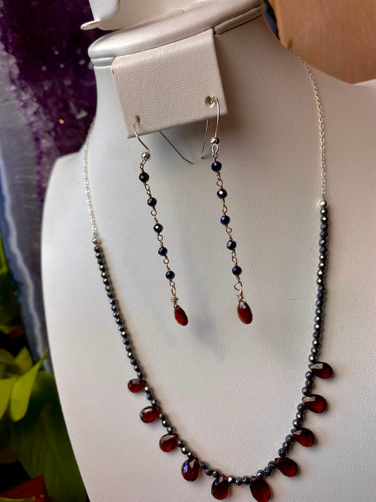 Garnet Necklace & Earring Set with Faceted Smoky Quartz, Citrine and Garnet Briolette Accent
